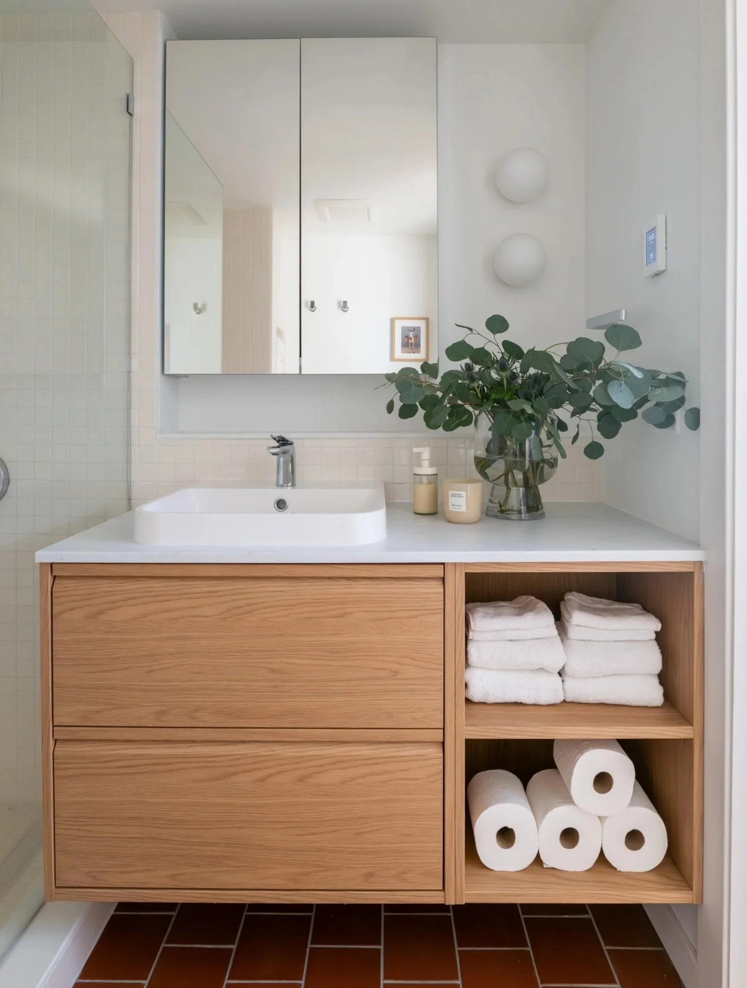 A Full Bathroom: We prioritized functionality and comfort with a spacious shower, ample storage for linens, and the ultimate game-changer: heated floors.